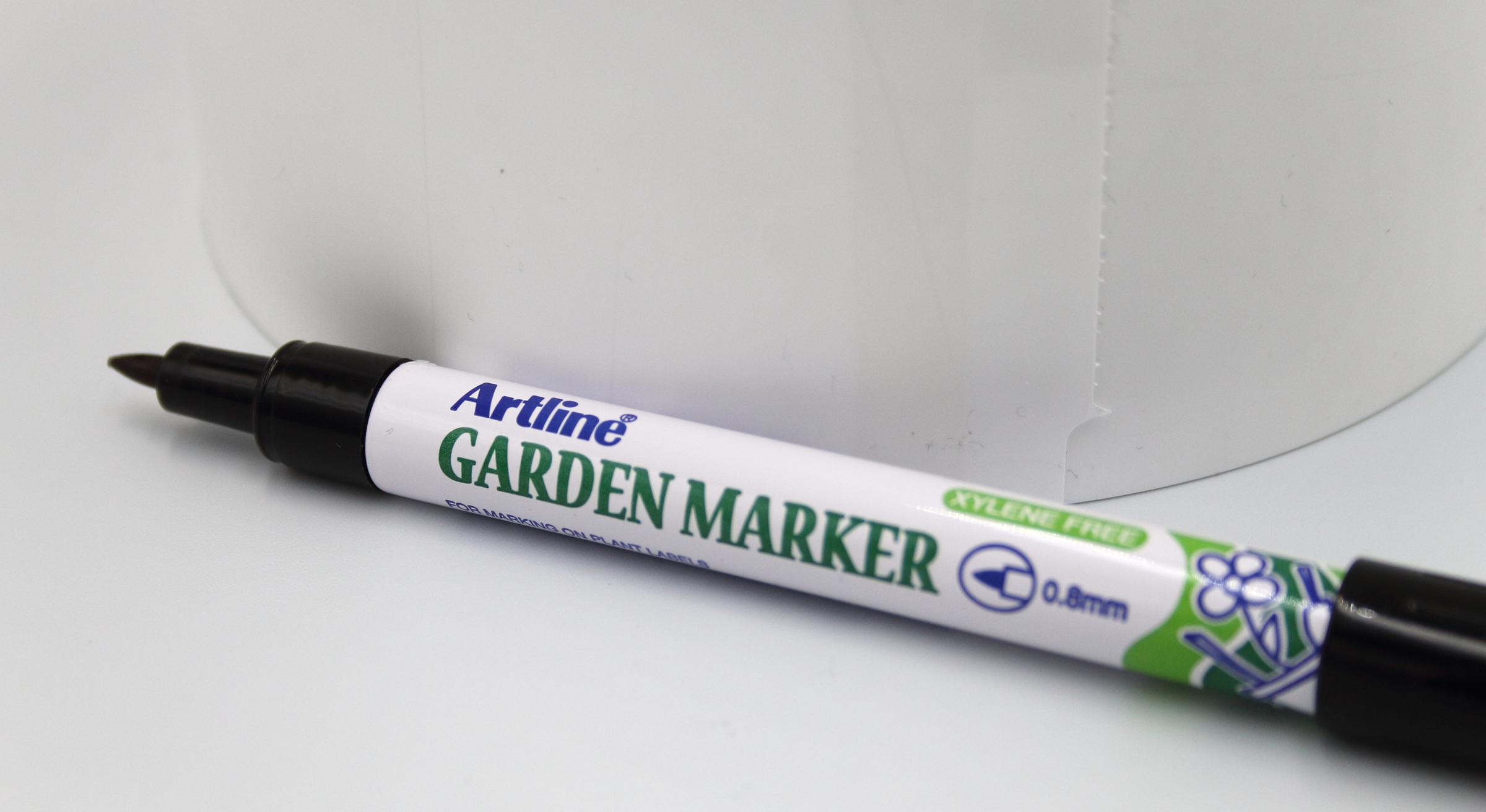 Permanentny czarny marker przeznaczony do trwałego opisania etykiet ogrodniczych. Wygodny w użyciu. Tusz wysycha natychmiastowo. Odporny na ścieranie, wilgoć oraz działania czynników zewnętrznych. Wytrzymały i wodoodporny .Fibrowa okrągła końcówka, 0 ,8 mm (szerokość linii). ,Dostępne kolory: czarny.